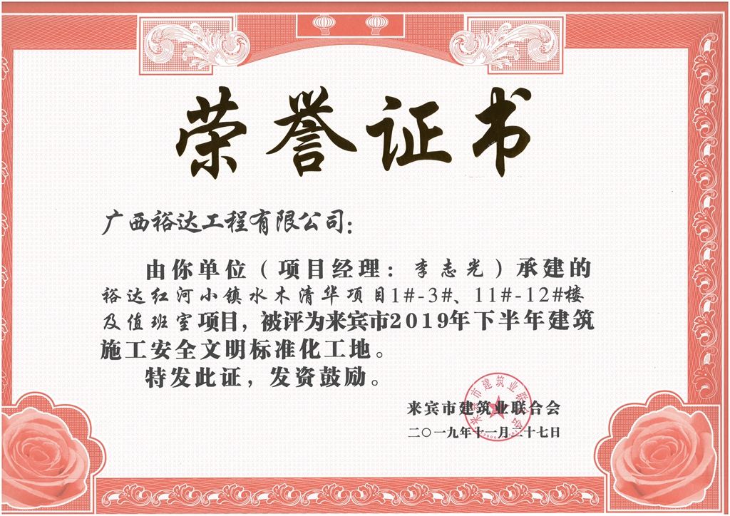 上一篇:裕达红河小镇水木清华项目1#-3#、11#-12#楼及值班室项目被评为来宾市2019年下半年建筑施工安全文明标准化工地(项目经理:李志光)