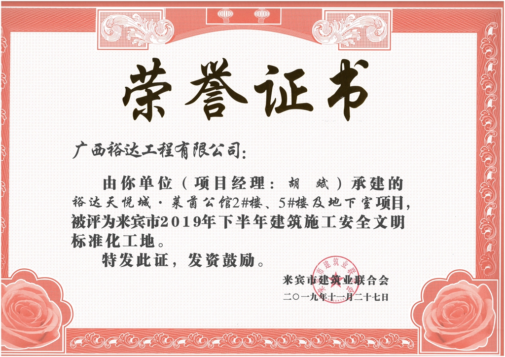 下一篇:裕达红河小镇水木清华项目1#-3#、11#-12#楼及值班室项目被评为来宾市2019年下半年建筑施工安全文明标准化工地(项目经理:李志光)