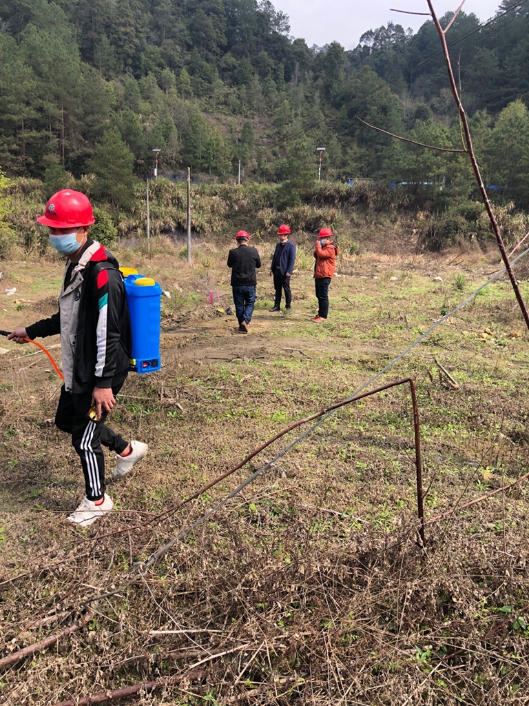 疫情防控小组在为施工场地进行消毒,确保施工卫生安全