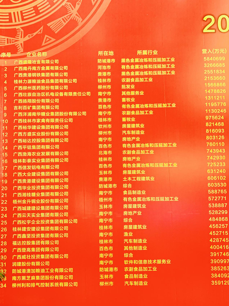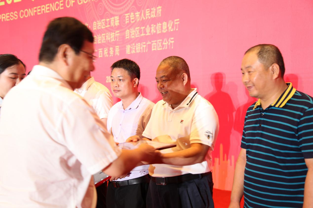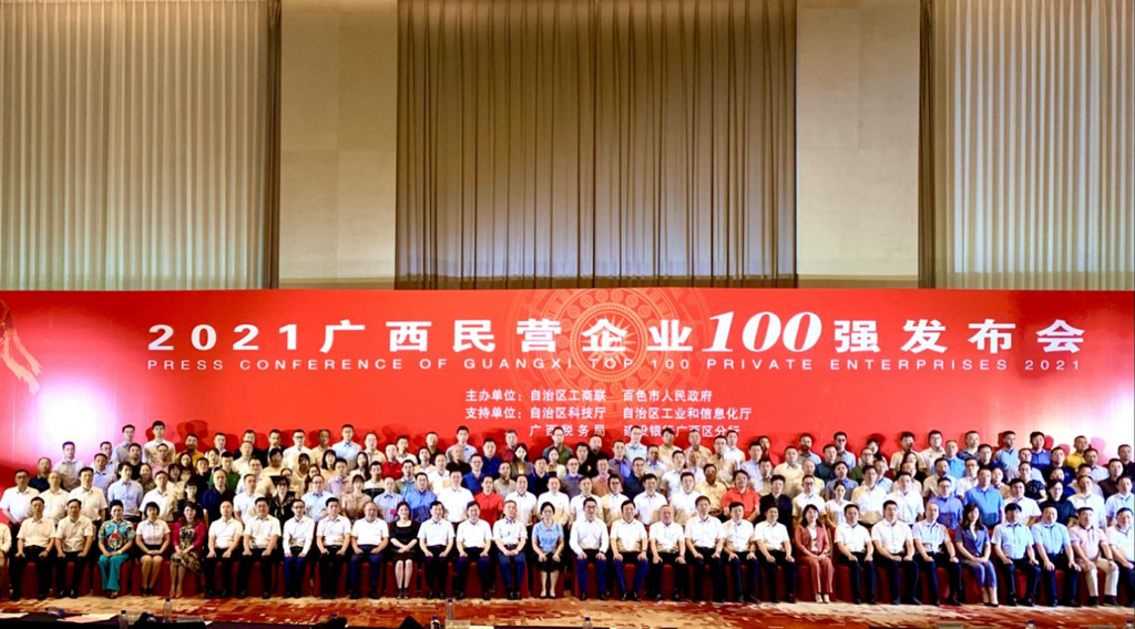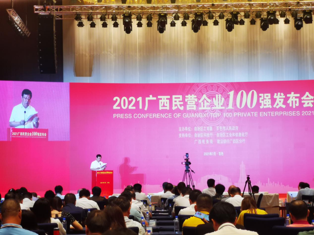 7月23日上午,2021广西民营企业100强发布会在百色饭店一楼国际会议中心举行本次发布会由广西工商联、百色市人民政府主办,广西科技厅、广西工业和信息化厅、广西税务局、建设银行广西区分行协办。自治区人大常委会副主任赵乐秦自治区副主席费志荣,自治区政协副主席、工商联主席磨长英,中共百色市委书记周异决,百色市市长葛国科等领导出席活动我集团董事长邓亚保应邀出席。