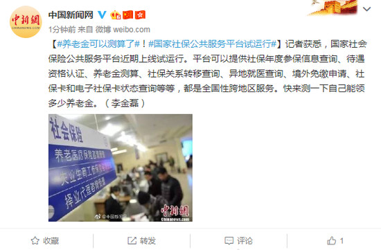 近日,国家社会保险公共服务平台上线试运行。