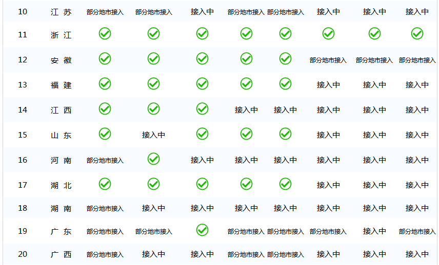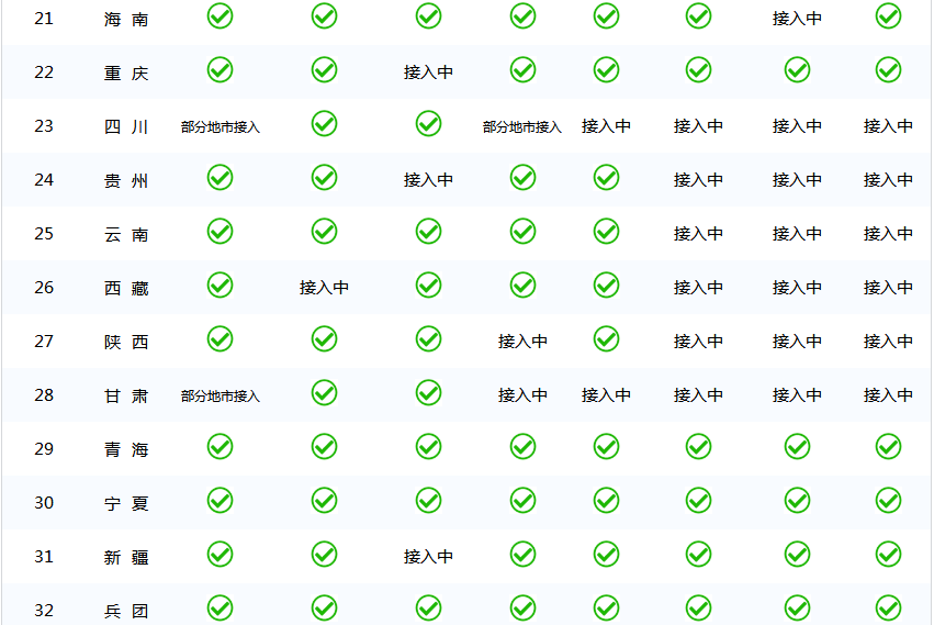 目前全国各省开通社会保险个人权益记录单查询服务情况如下: