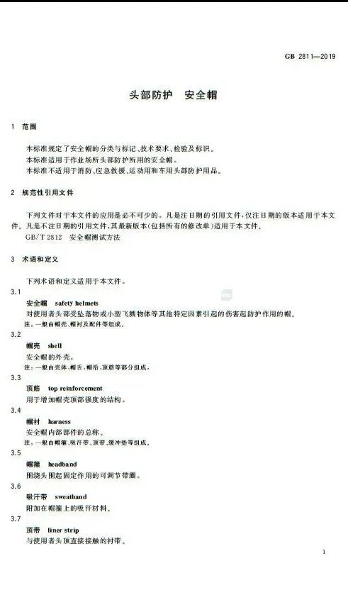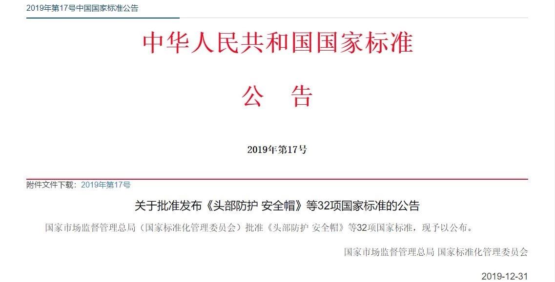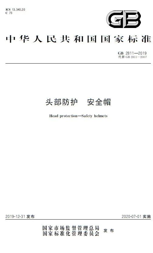 国家市场监管总局、国家标准委批准发布新版安全帽标准GB2811-2019《头部防护 安全帽》,将于2020年7月1日起正式生效。
