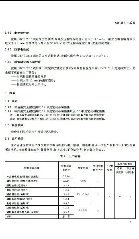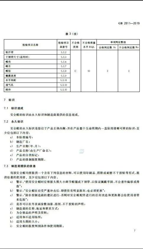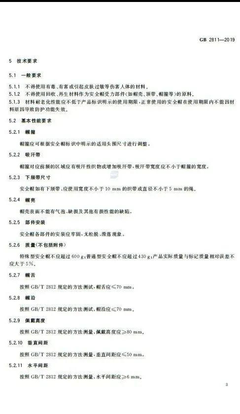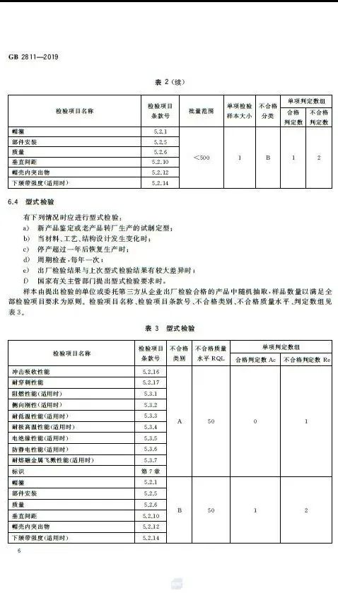 新版的GB2811-2019规定,在安全帽内侧,全生命周期内必须清晰保持以下6项标识: