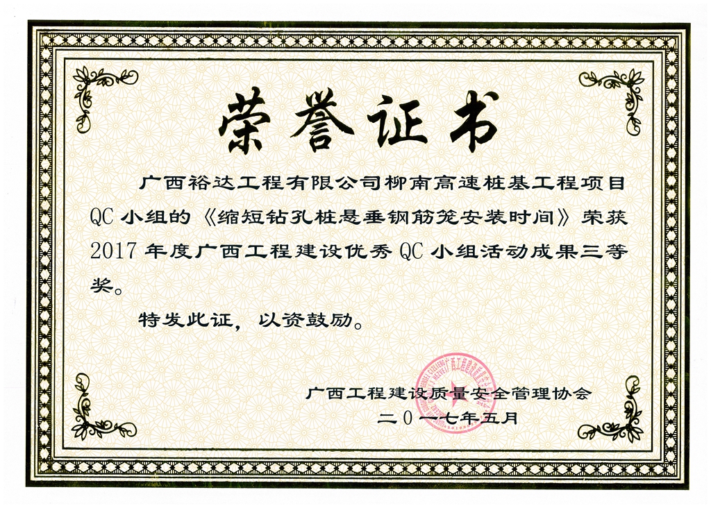 2017年广西工程建设优秀QC小组活动成果鼓励奖