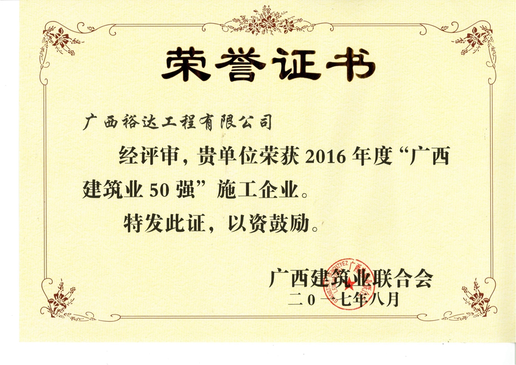 2016年度“广西建筑业50强”施工企业