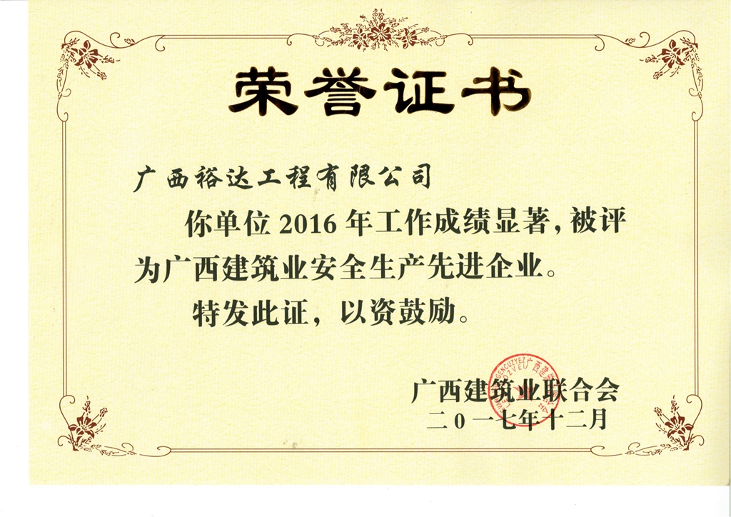 2016年广西建筑业安全生产先进企业