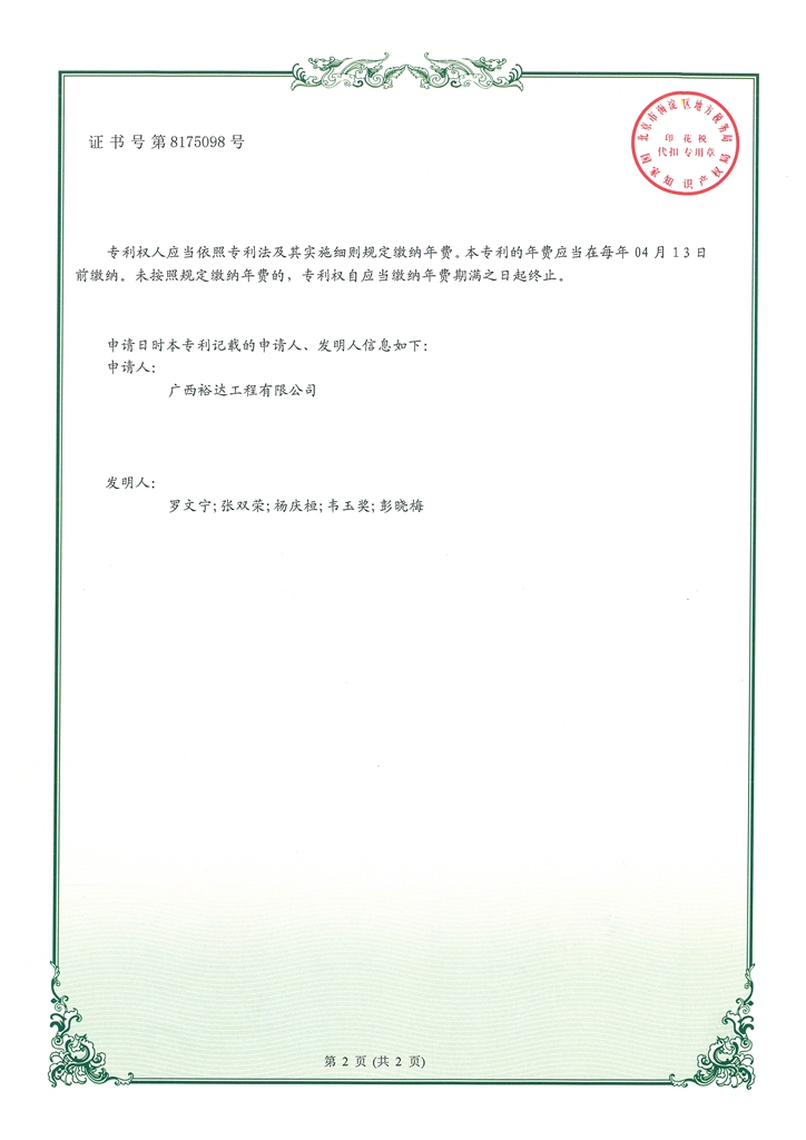 2018年实用新型专利证书(一种便携式建筑钢材搬运装置)