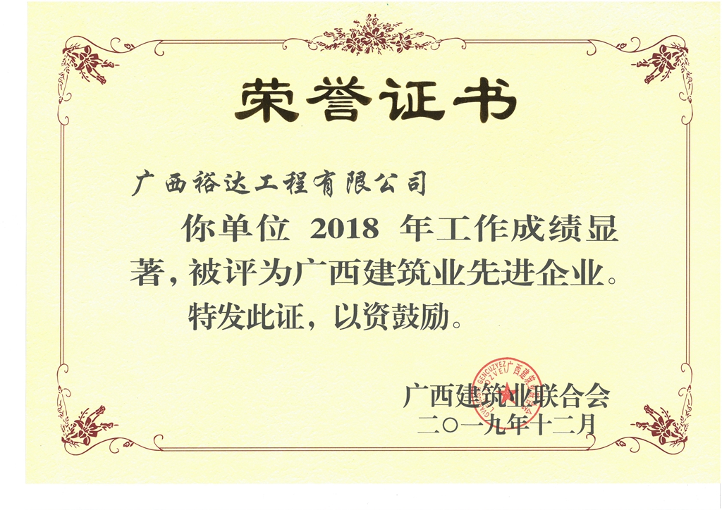 裕达·裕嘉园1#楼及地下室工程评定为2019年第二批广西建设工程优质结构奖